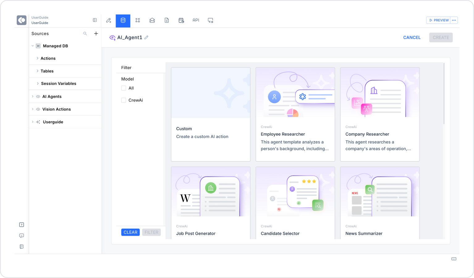 Kuika's AI Agents feature allows you to integrate more interactive and scenario-based artificial intelligence experiences into your applications. With this feature, you can create artificial intelligence agents that perform different tasks, have specific roles, and can provide dynamic responses based on user input.