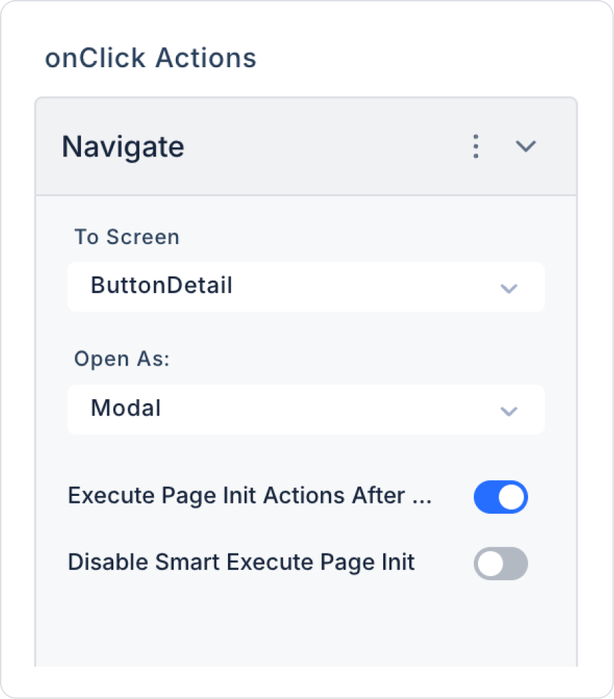 Since the Button element is an element based on user interaction, it supports the onClick trigger. When the Button is clicked, the following scenarios can be performed: