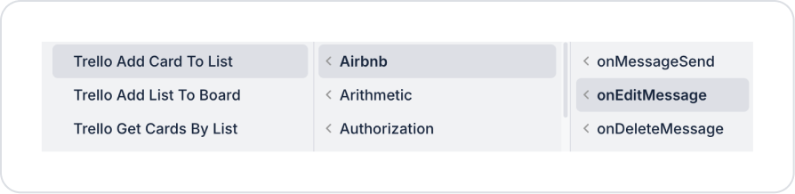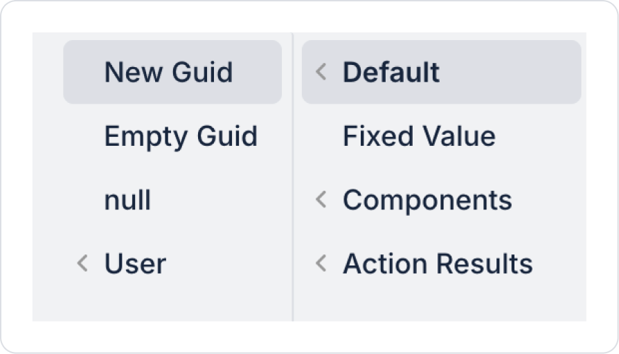 The Chat element supports the definition of event-based actions based on user interactions such as sending, editing, and deleting messages. Actions are not tied to the Chat element itself but are linked to events triggered by user interactions.