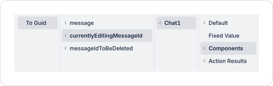 Define the Id field for the message being edited using Components > Chat > currentlyEditingMessageId > To Guid.