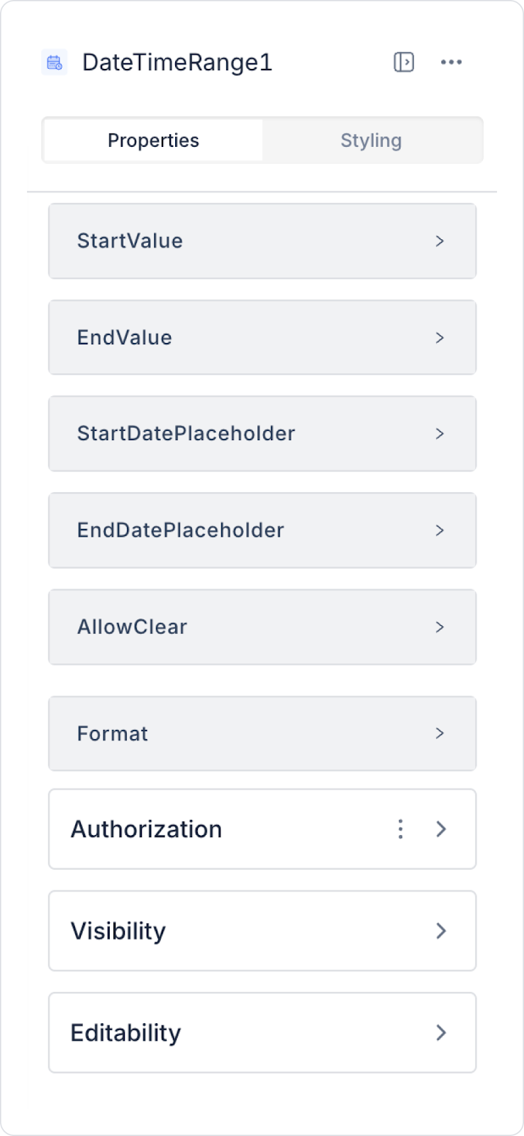 The Date Time Range element ensures logical accuracy between start and end times. For example, the end time cannot be selected before the start time, thus preventing incorrect data entry and improving the user experience.