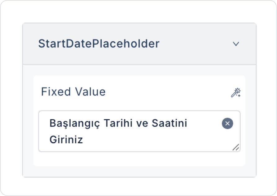 Start Date Placeholder: Provides information to the user about the field where they must enter the start date. For example, you can add text such as “Select Start Date”.