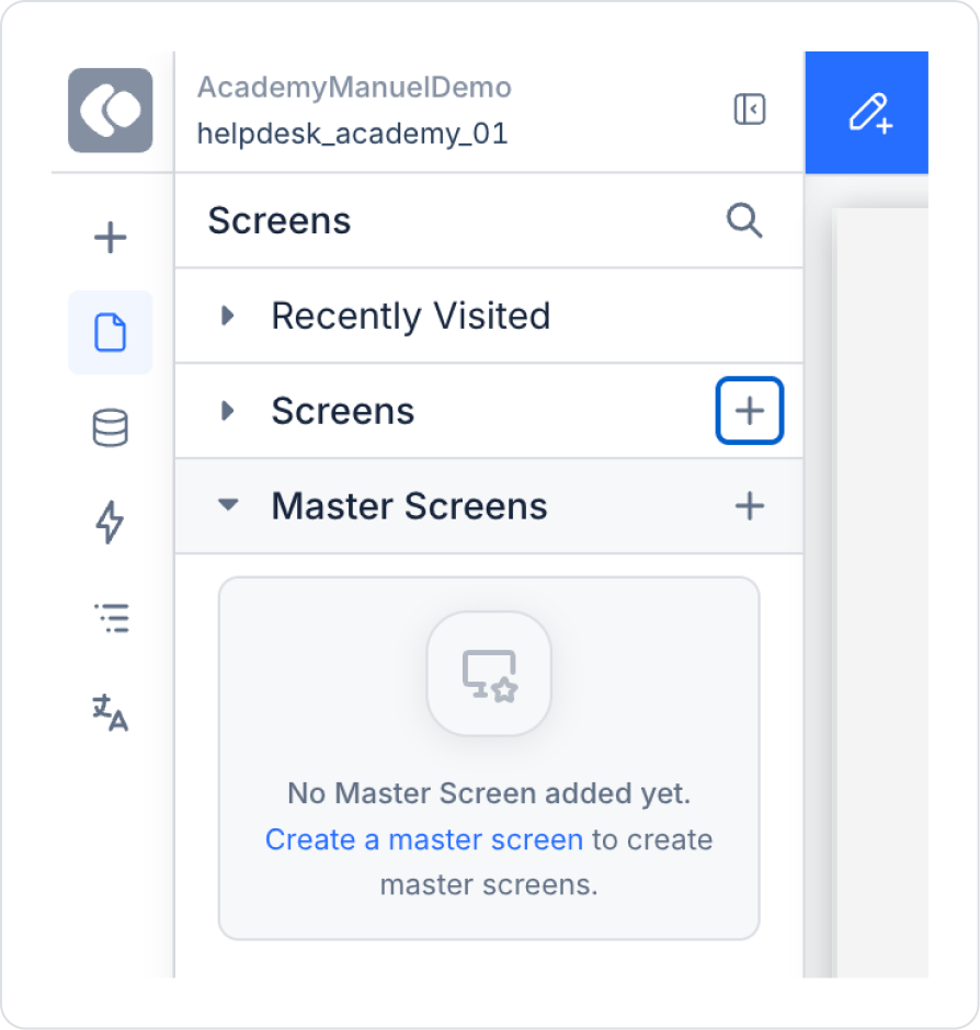 The newly created page will be located under Screens. Click on the created page to open it. Delete the column on the right side of the page.