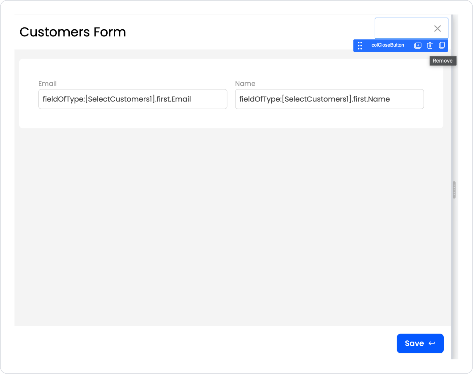When the user clicks the Floating Button, a Float Panel opens without leaving the screen, and the “Add New Customer” form is displayed within the panel.