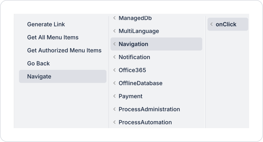 Quick navigation: Used to direct the user to a specific page or form with a single click.