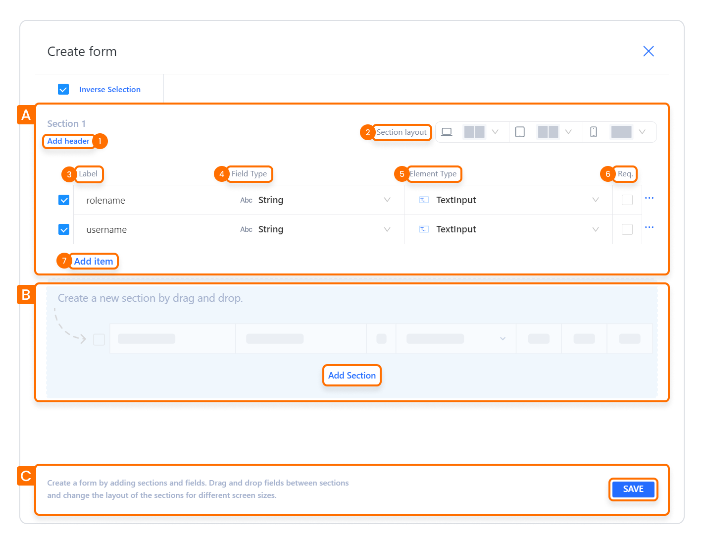 Add Header (1): Allows you to add a header to the form section. For example: “User Information,” “Address Information.”