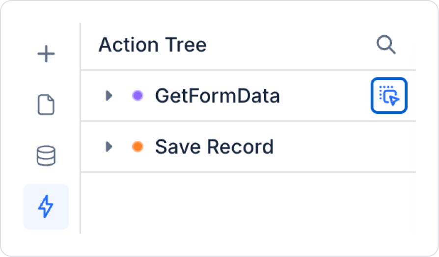 Drag the GetFormData action from the Action Tree field on the left side panel and drop it on the screen.