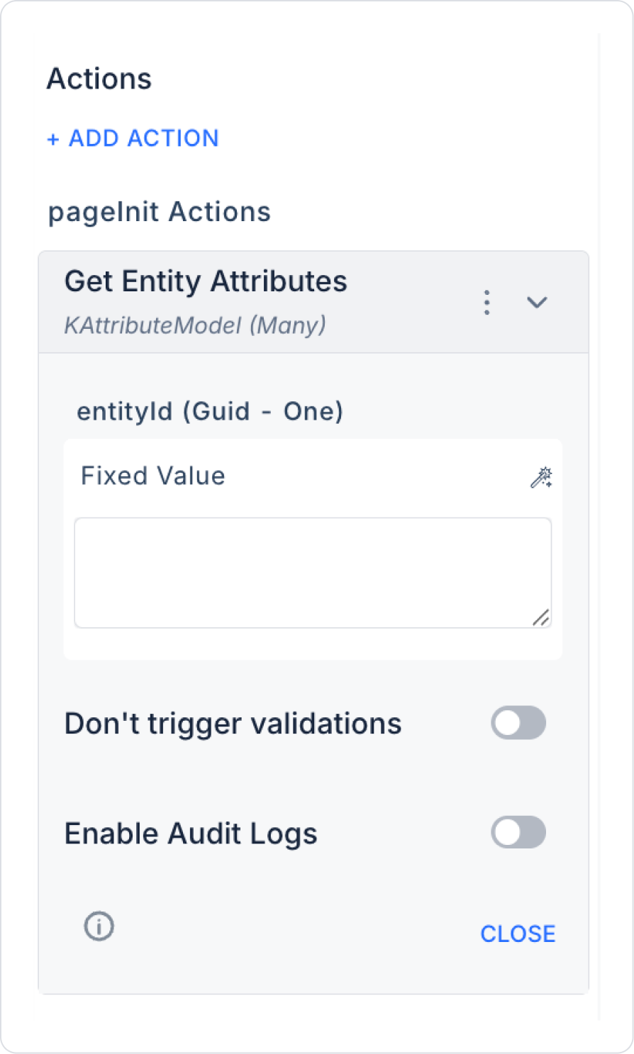 The Get Entity Attributes action is one of the fundamental steps in setting up dynamic forms and data structures in Kuika's EAV architecture. It enables the creation of customised and flexible interfaces by systematically retrieving all fields of a specific entity.