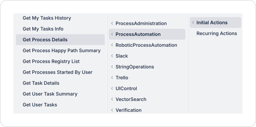 A process manager wants to examine in detail which steps a specific business process has gone through in the past and the operations performed in these steps. When the Get Process Details action is triggered, all past steps and operation details of the relevant process instance are displayed. This allows potential bottlenecks or areas for improvement in the process to be identified.
