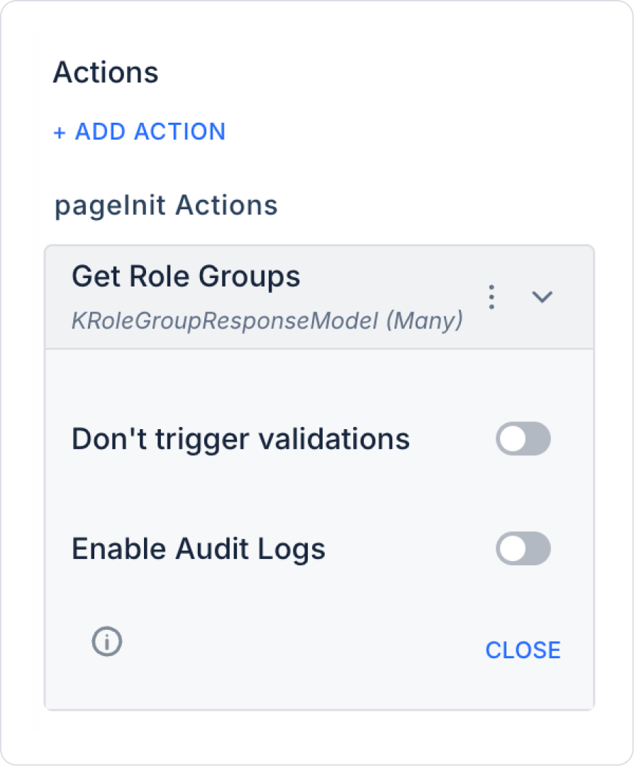 Enable Audit Logs (Boolean – optional): When enabled, the role group listing process is added to the audit log records. This allows you to track when, by which user, and through which action the role groups were viewed. It is recommended to enable this for applications that require authorization and security tracking.