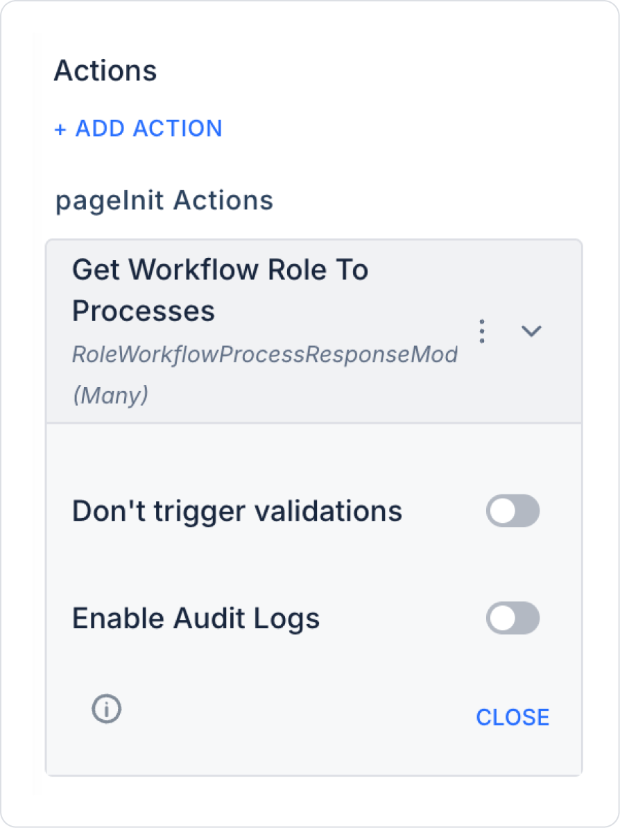 Enable Audit Logs (Boolean – optional): When enabled, the process of querying the role-process relationship list is added to the audit log records. This allows you to track which user, when, and through which action viewed the role-process matches. It is recommended to enable this in applications that require authorization and security tracking.