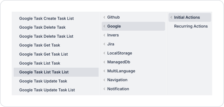 UI Design → + ADD ACTION → Google → Google Task List Task List.