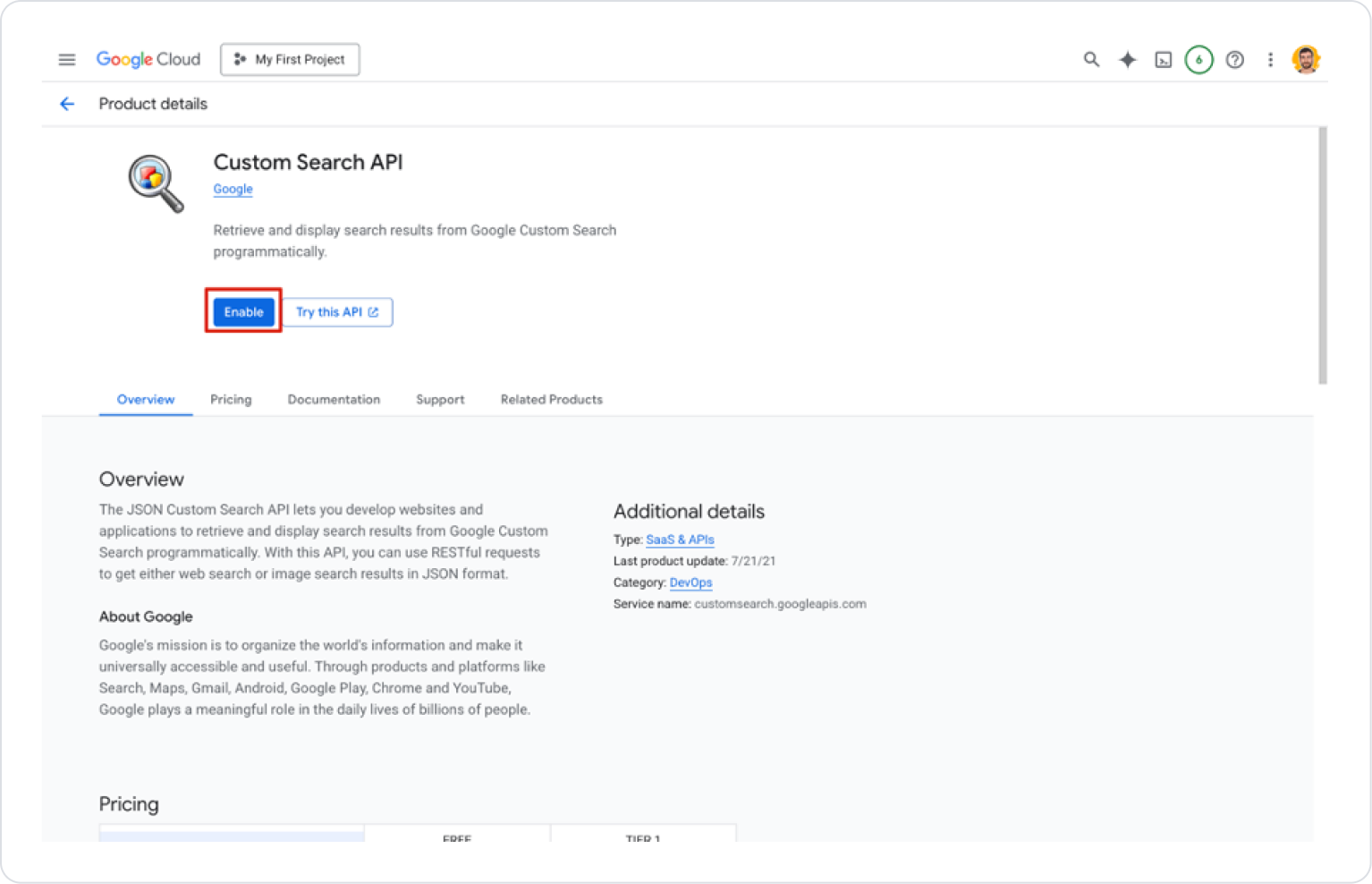 Returns a success message → Information about the Search Engine is returned. E.g.: The cx value used (Search Engine ID), domains allowed for search, configuration information.