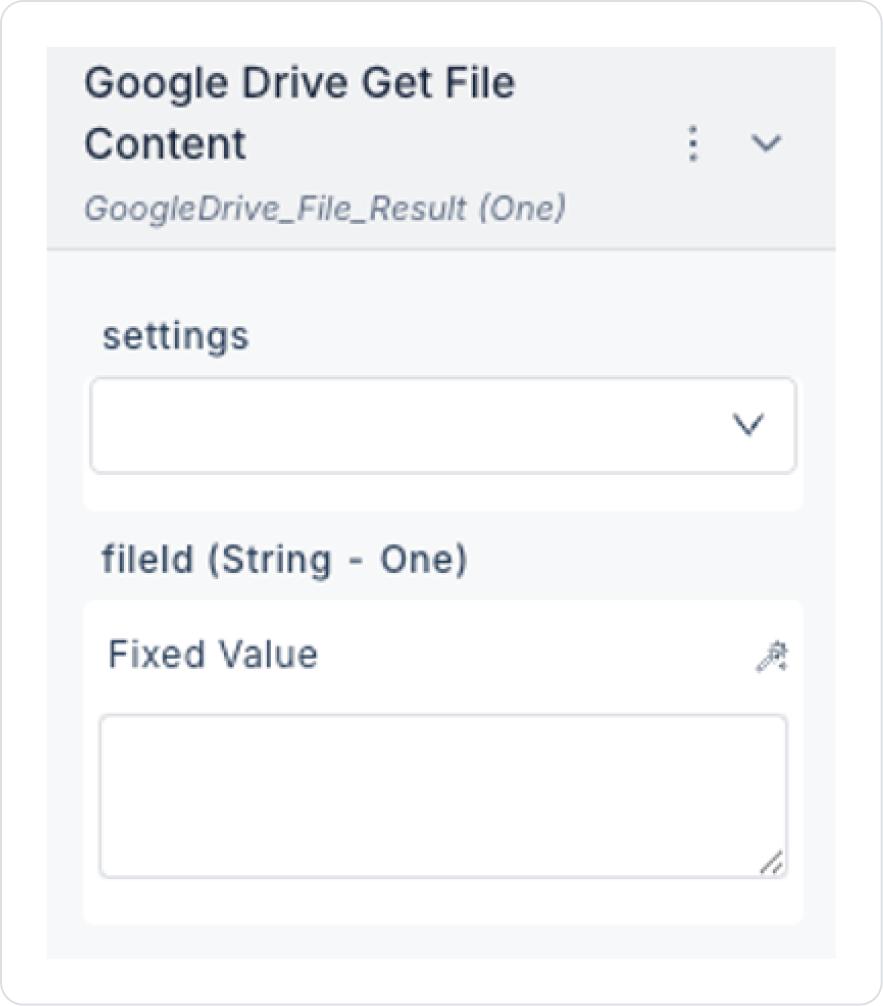 fileId can be obtained using the Google Drive Search Files or List Items actions.