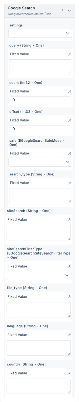 fileType (String – optional): Performs a search based on a specific file type. E.g.: “pdf”, ‘docx’, “xlsx”
