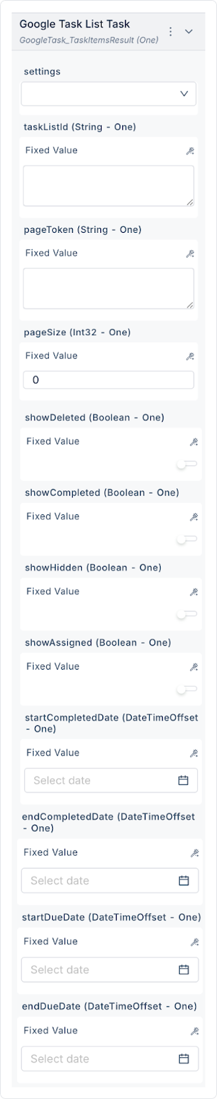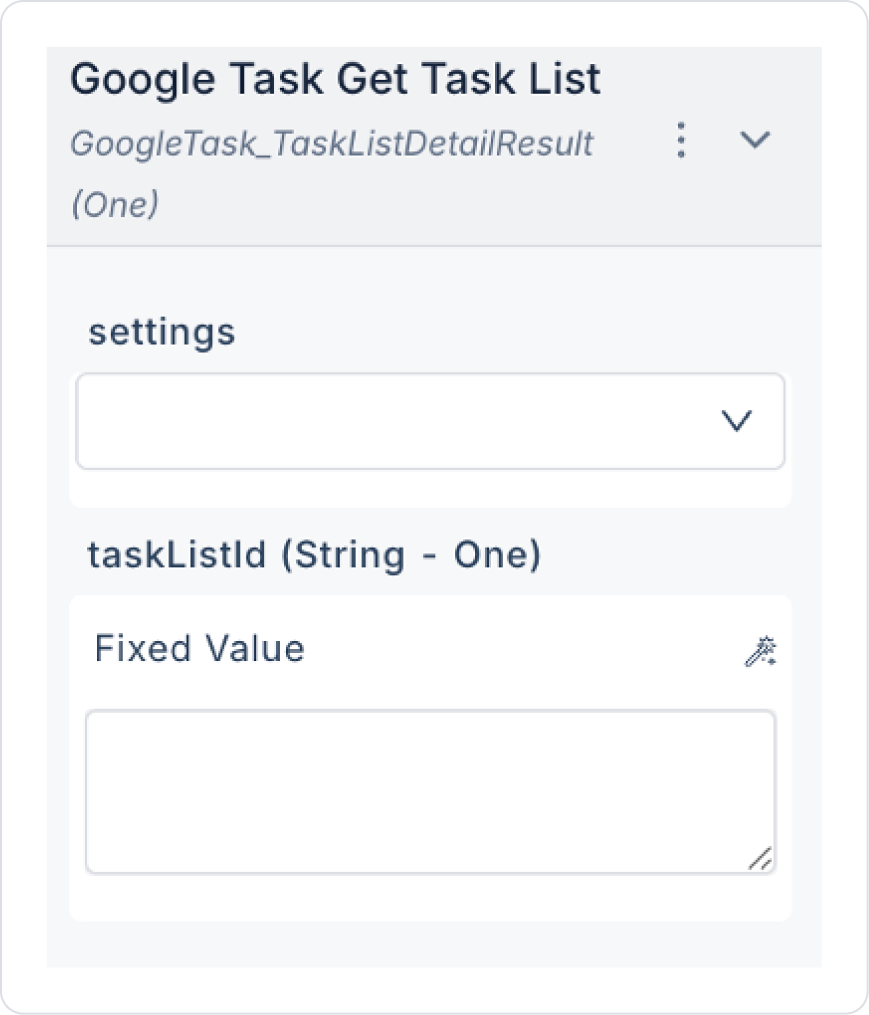 taskListId (String – required): The ID of the list from which tasks will be retrieved.