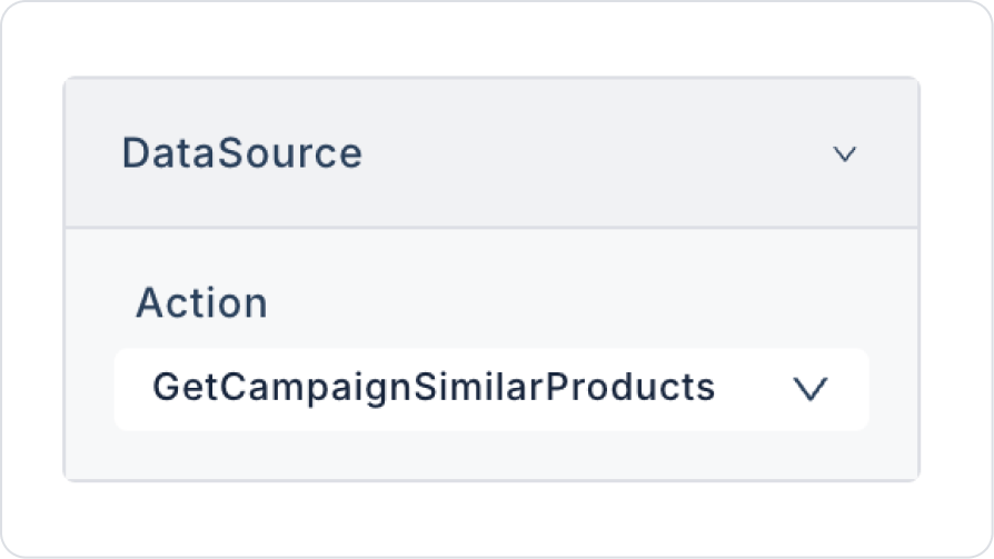 On the page, add the Add Action > Initial Action > Custom > Managed Db > GetCampaignSimilarProducts action.