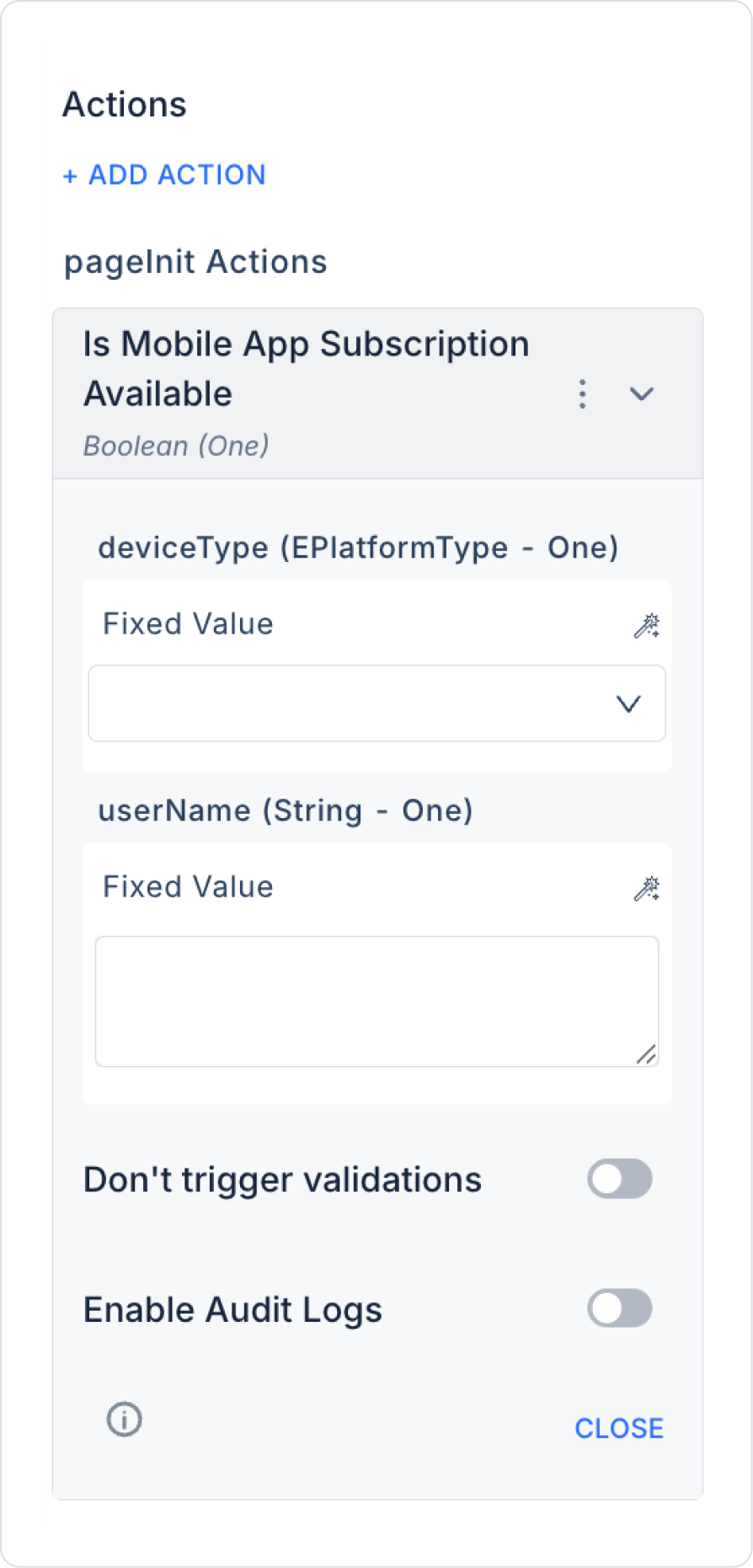 Enable Audit Logs (Boolean – optional): When enabled, the mobile subscription check process is added to the audit log records. This allows you to track which user performed the subscription check, for which platform, and when.