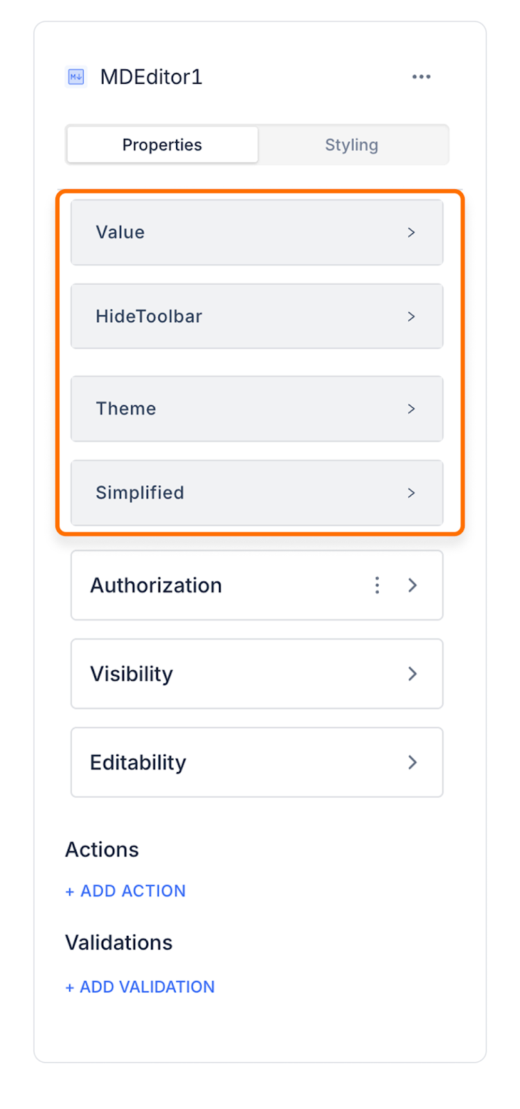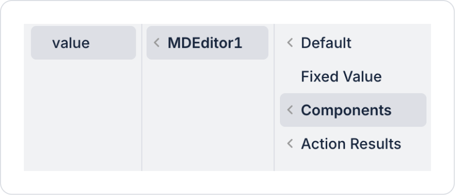 Value: Represents the content edited and saved in the MD Editor. When users enter text in Markdown format, this content is saved in the Value field.