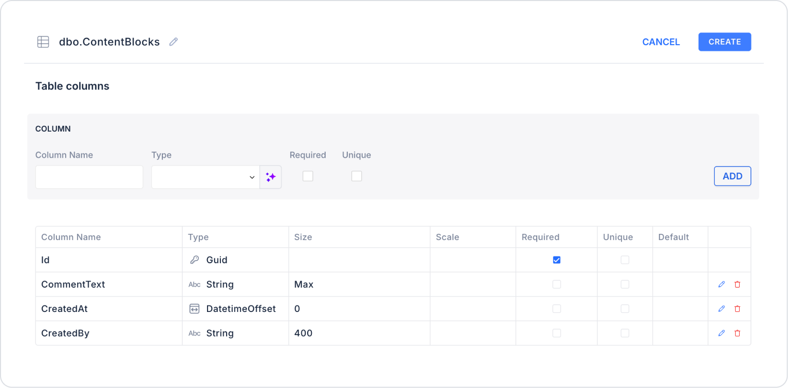 Create a new table named “ContentBlocks”.