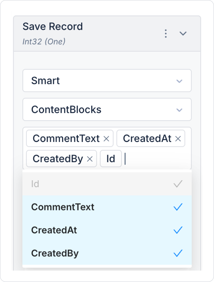 In the Save Record action, select the ContentBlocks table. In the column names field that opens, select all column names.