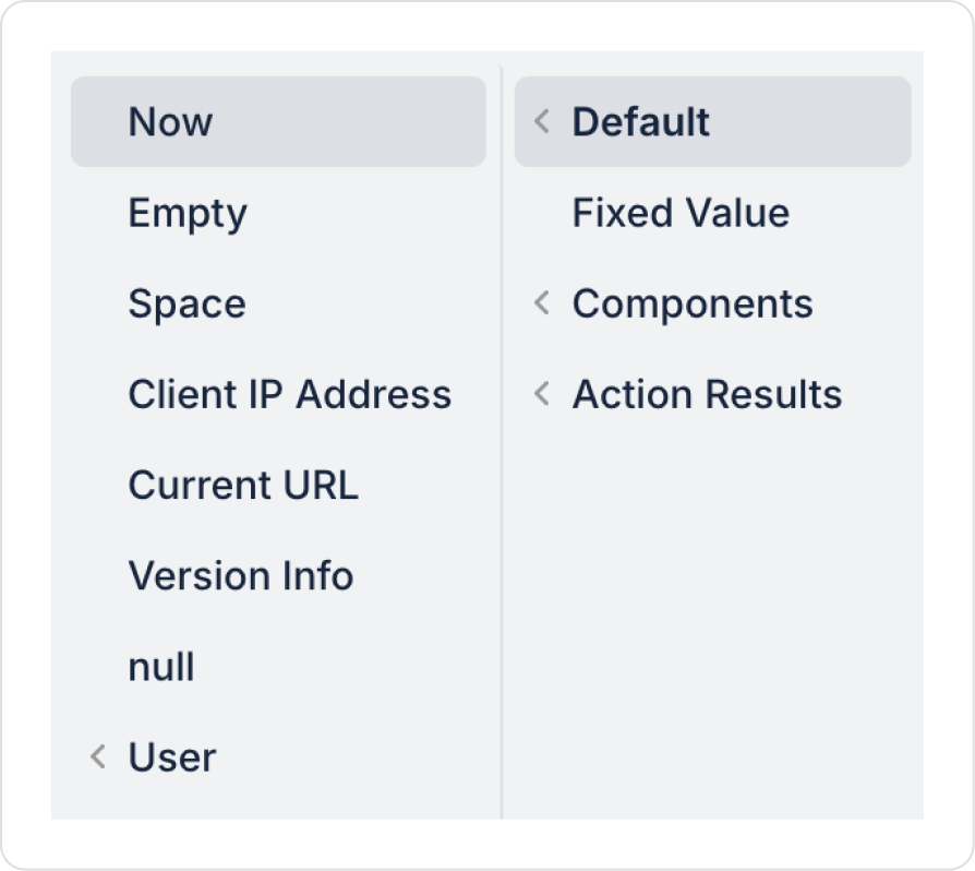 Dynamic data binding support: Content can be entered statically or managed dynamically with state, variable, and action outputs.
