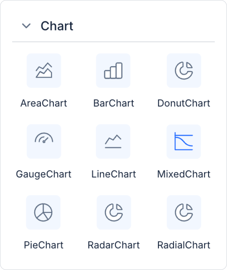 Dynamically loading chart data from the data source. Can be updated instantly with data from SQL, REST API, or Managed DB actions.