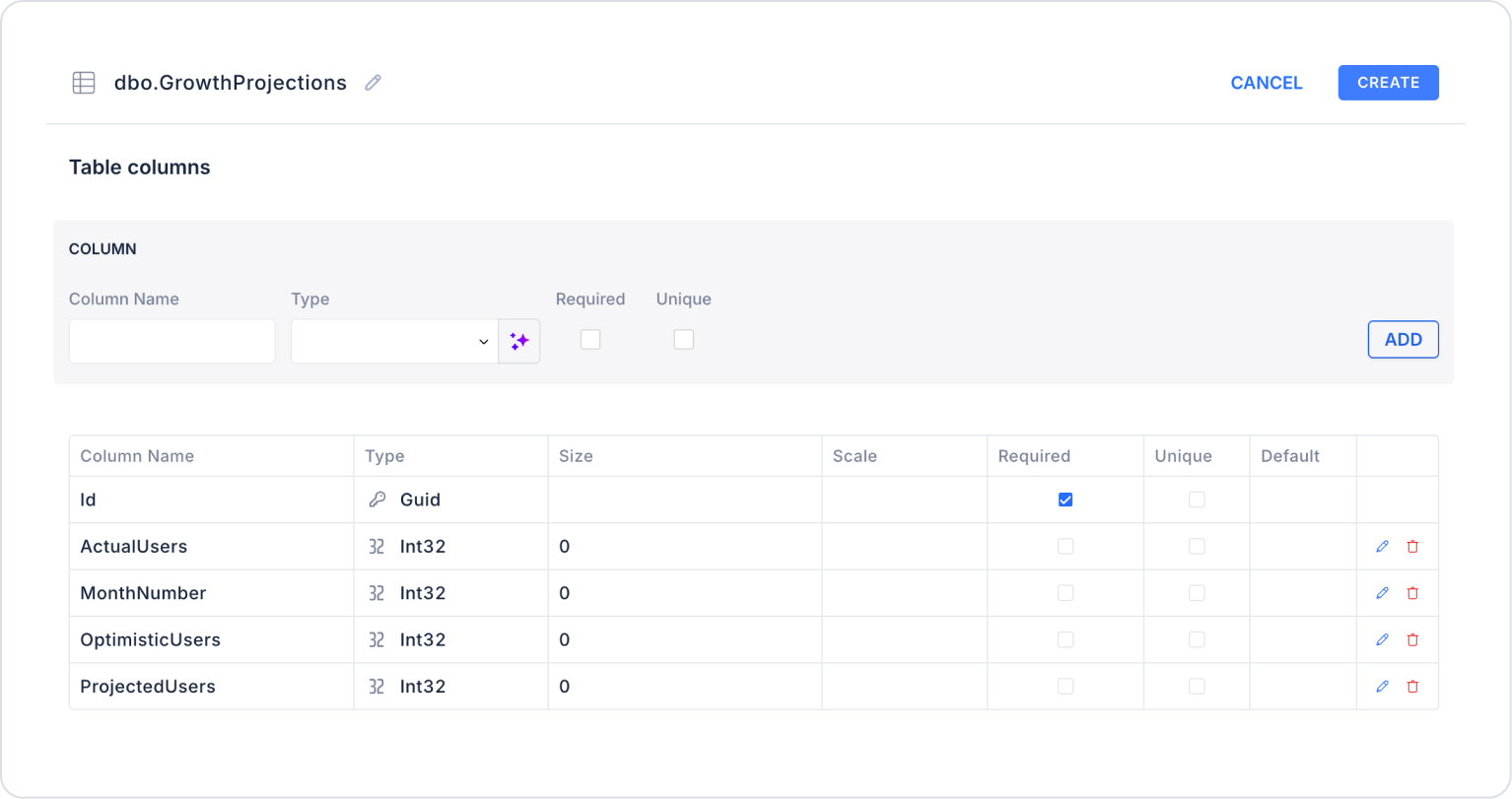 Add the following SQL action to test the application with sample data and press the TEST button.
