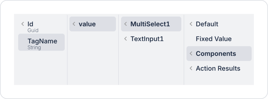 The Multi Select element supports the definition of event-based actions based on the multiple selections made by users. Actions are not tied to the element itself but are linked to events triggered by user interactions.