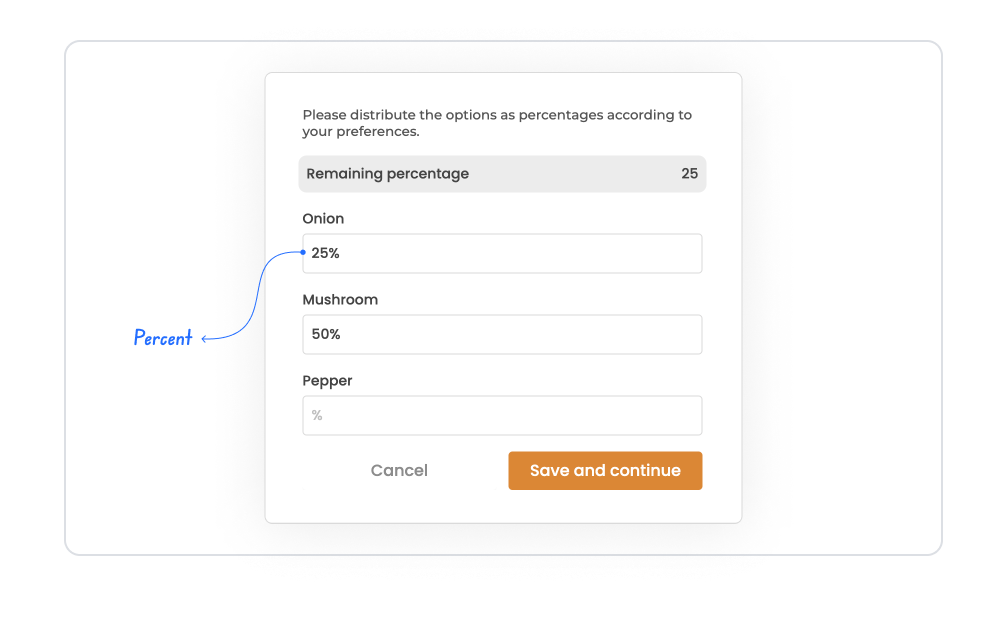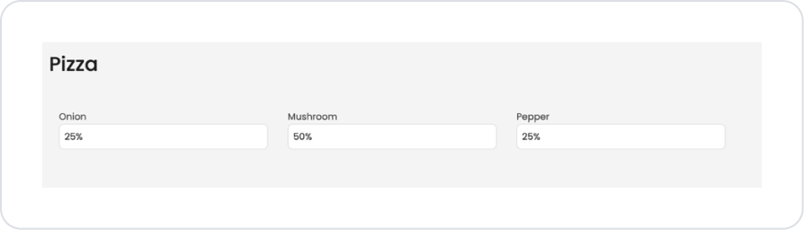 In a food ordering application, the user specifies the mix ratio of the selected ingredients as a percentage. For example, for a pizza: