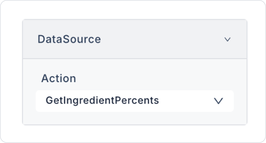 Connect the data source to the Gallery View element: GalleryView > Properties > DataSource > Action > GetIngredientPercents.