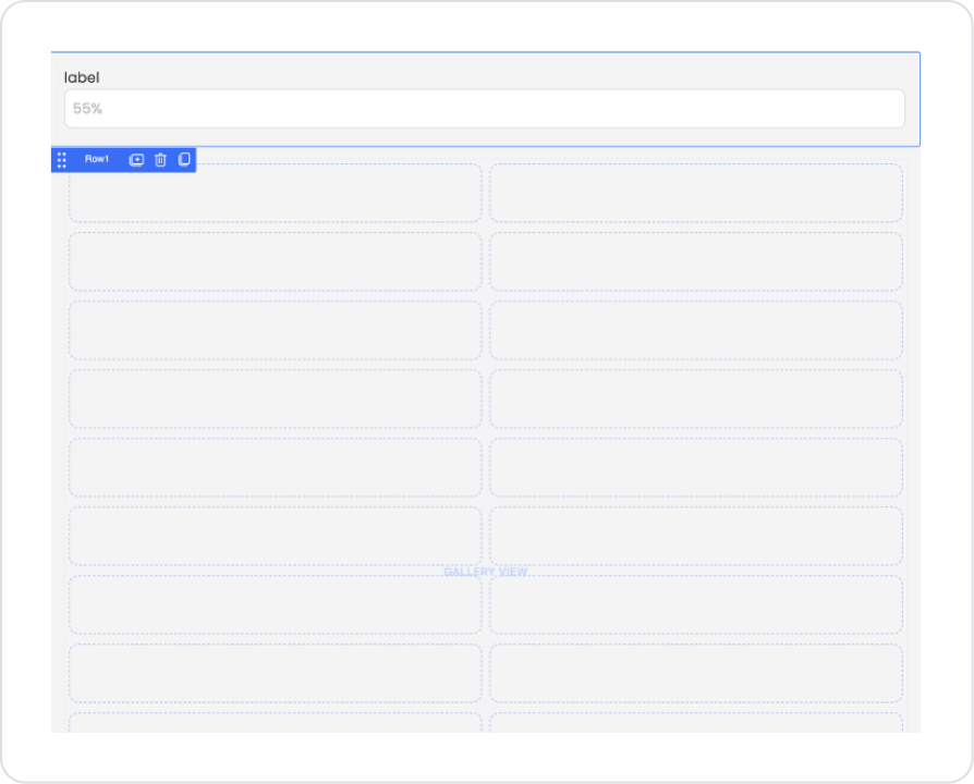 Drag and drop the Row group with Percent and Label selected into the Gallery View.