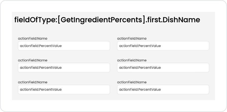 Set the action name as GetIngredientPercents.