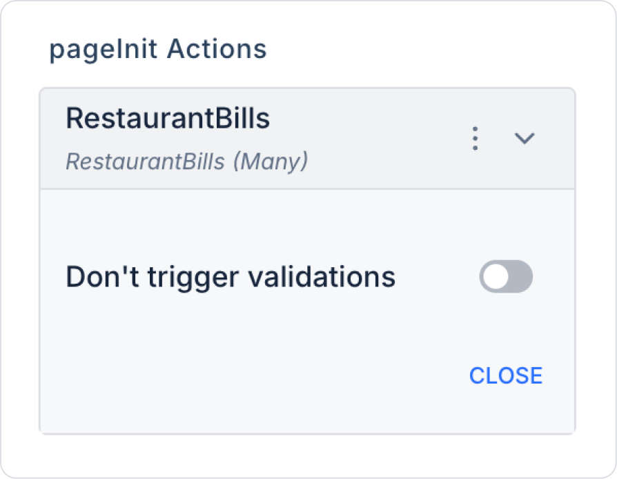 Add the Add Action > Initial Action > Custom > Managed Db > RestaurantBills action to the page.