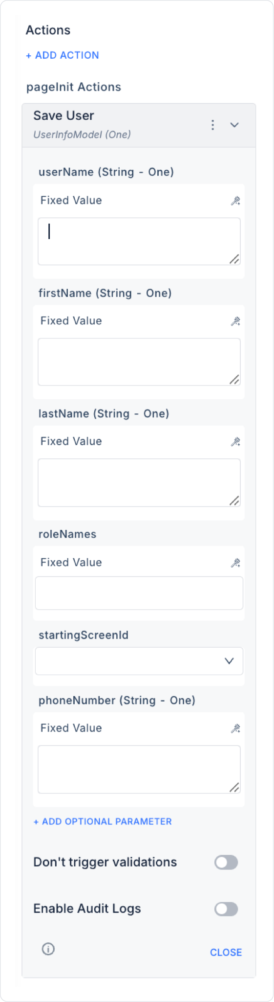 The Save User action simplifies user management and allows you to effectively configure access controls within the application. New user registrations, role assignments, and screen redirects can be integrated into a single configuration. It offers a flexible and secure user management infrastructure with customisable security and notification options.