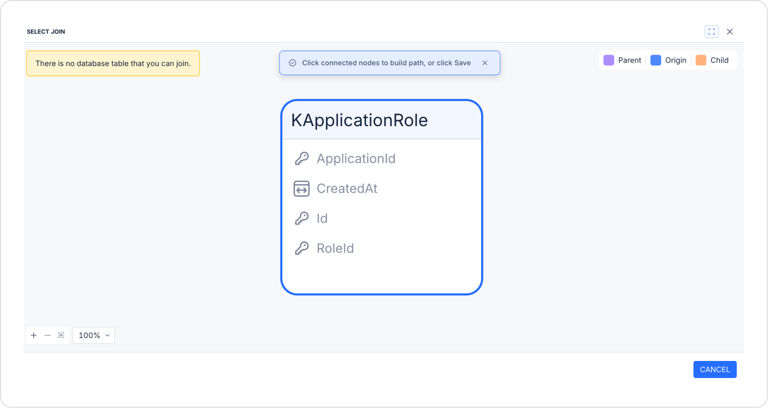 From the Relations tab, you can select tables you created earlier as data sources and join multiple tables within the same query to establish relationships between them.