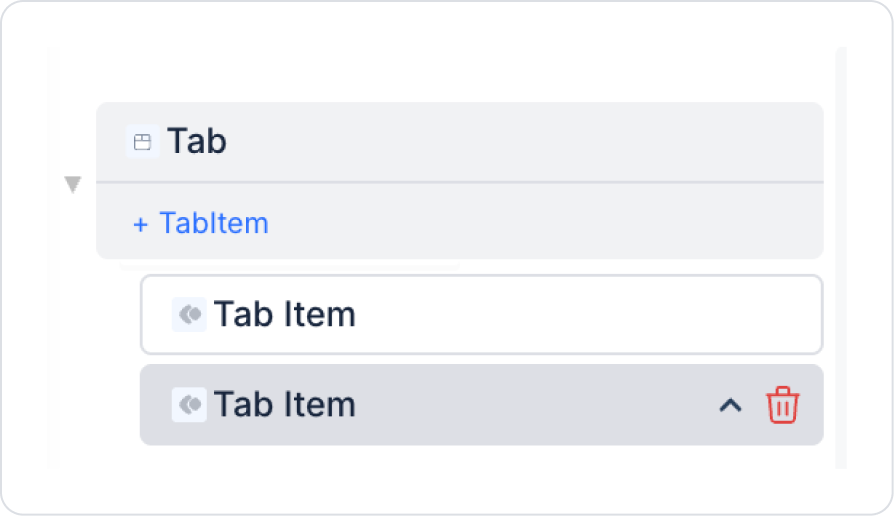 Tab: You can add new tabs, remove existing tabs, or change their order. When you remove a tab, its content is automatically deleted.