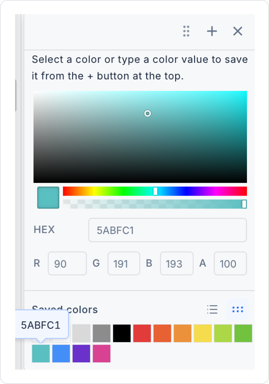 Click on the Tab element again and set the selected area color to Tab > Properties > SelectedTabColor > Hex > 5ABF1.