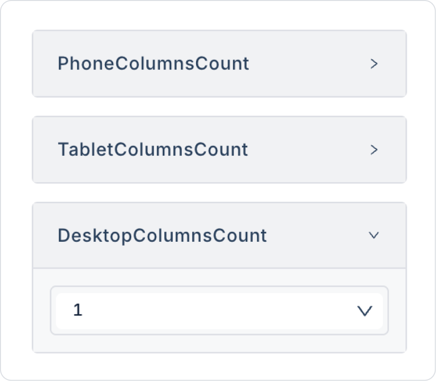 In the Gallery, set the Properties phoneColumnsCount, tabletColumnsCount, and DesktopColumnsCount fields to 1 to display one column for all types.