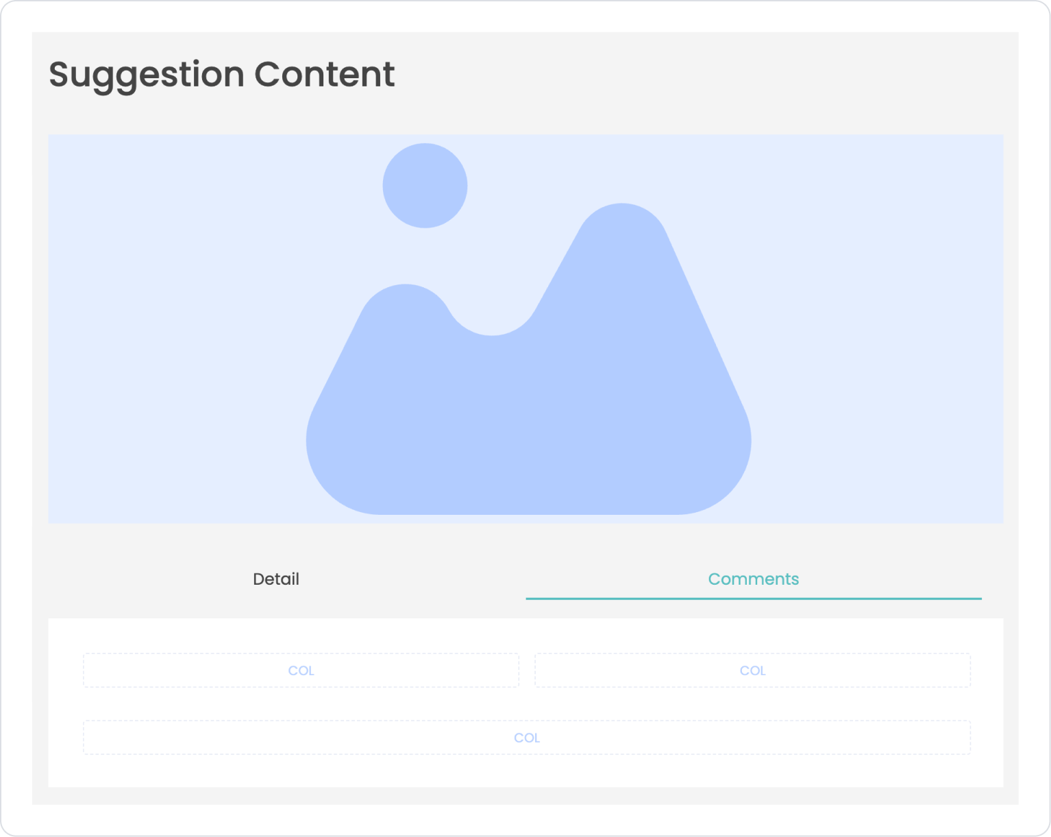 The Tab structure is used in an application to allow users to review shared suggestions in detail and quickly access comments. In this scenario, visual content, description information, and user comments related to a suggestion are presented on a single screen.