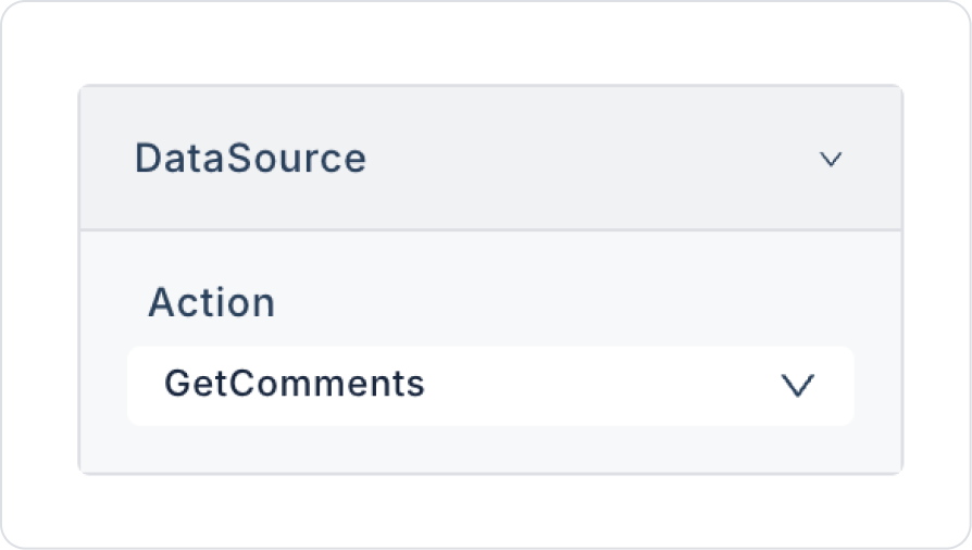 For the data source, connect the GalleryView > Properties > DataSource > GetComments action.