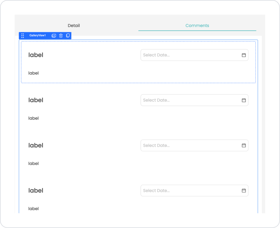 Drag and drop the Elements > Data > Gallery element below the Label element.