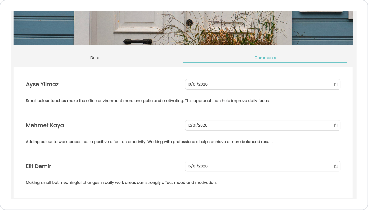 ‘Adding color to workspaces has a positive effect on creativity. Working with professionals helps achieve a more balanced result.’ AS CommentText,