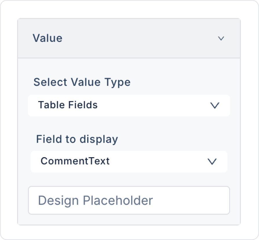 Update the text to Label > Properties > Value > “Suggestion Content”.