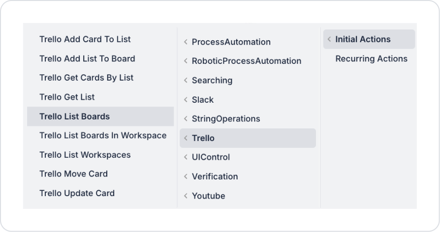 Chain Usage: Rotating boardId values can be passed to actions such as Trello Get List or Trello Add List To Board.