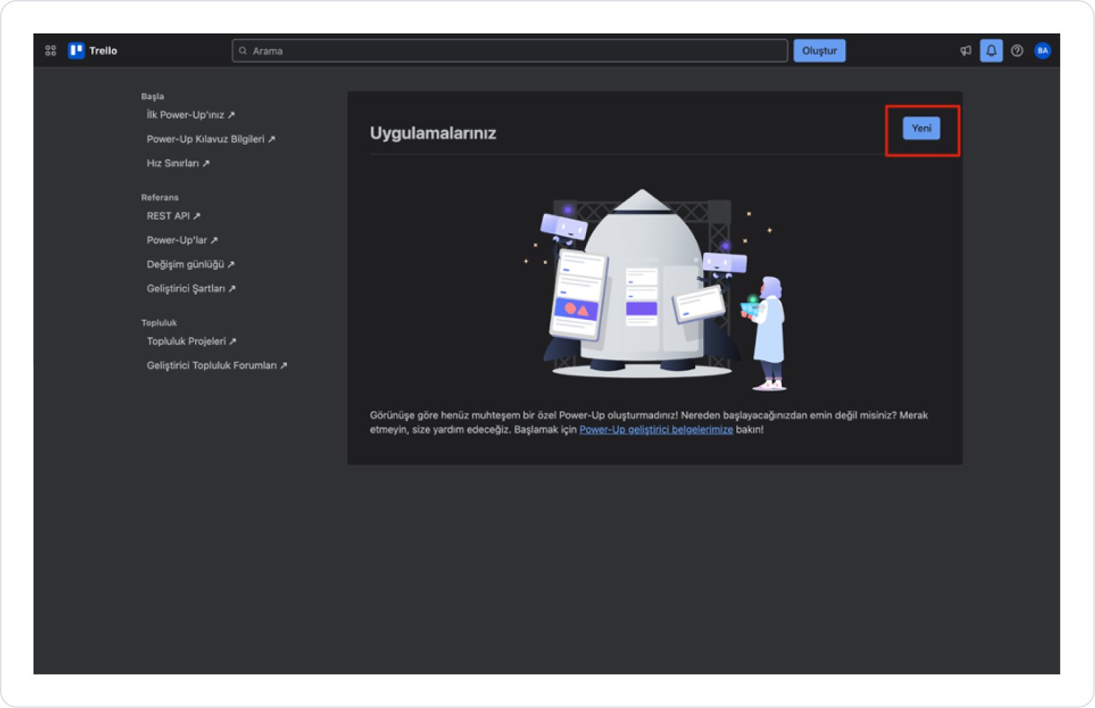 Log in to the Kuika platform. Select the project you will be working on from the Apps screen. Click the ADD NEW button in the Configuration Manager → App Settings → MCP → Trello area. Required Fields