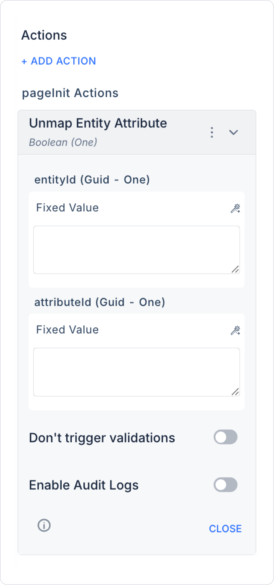 Kuika's Unmap Entity Attribute action is used to remove the connection between attributes (properties) that were previously associated with an entity (entity). With this action, unwanted or unused fields (attributes) can be easily separated from an entity without being deleted.
