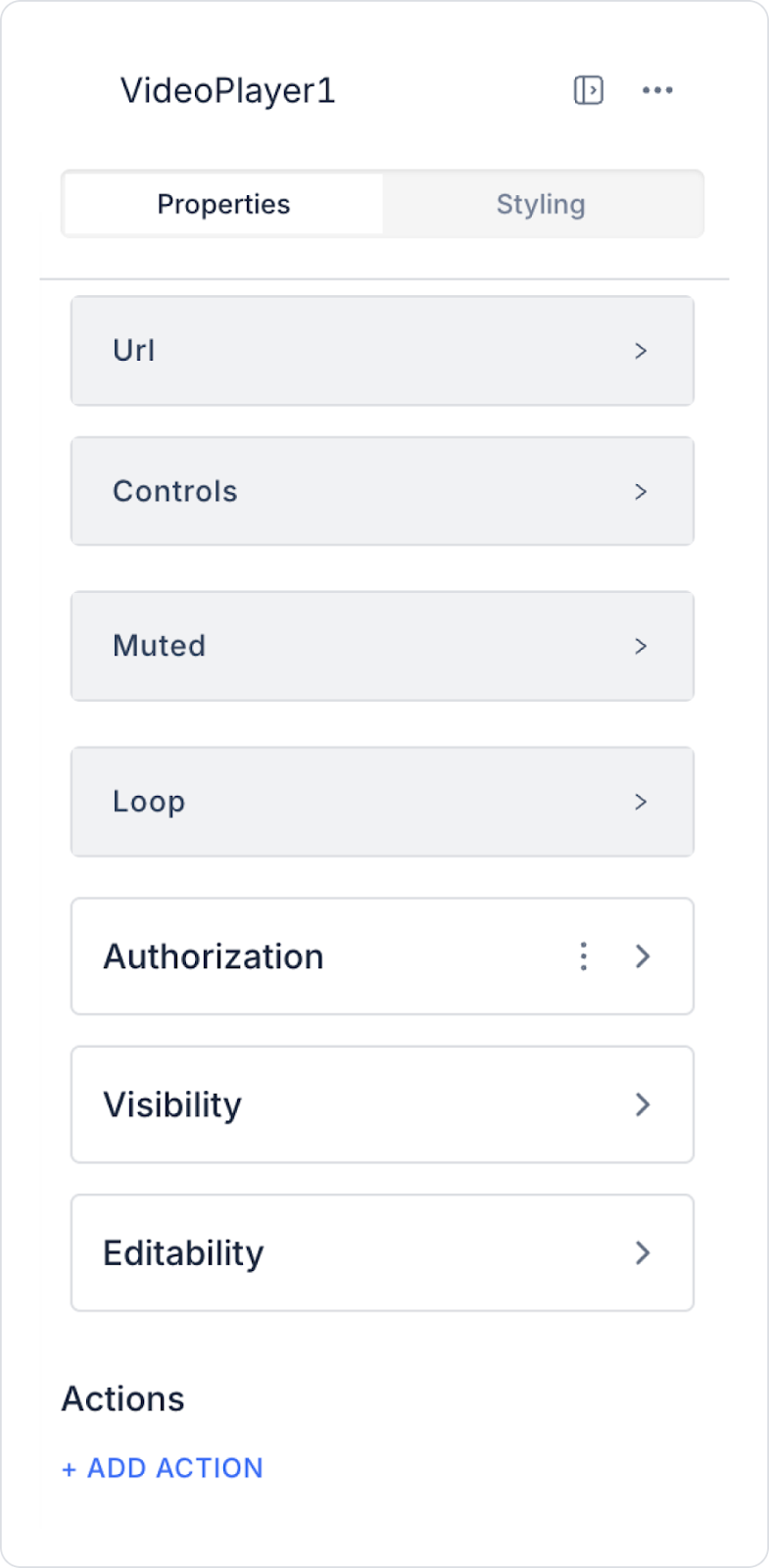 You can configure the properties of the Video Player element from the Properties panel on the right side: