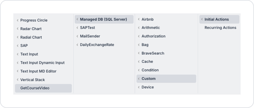 Add the GetCourseVideo action to the home page as Add Action > Initial Action.