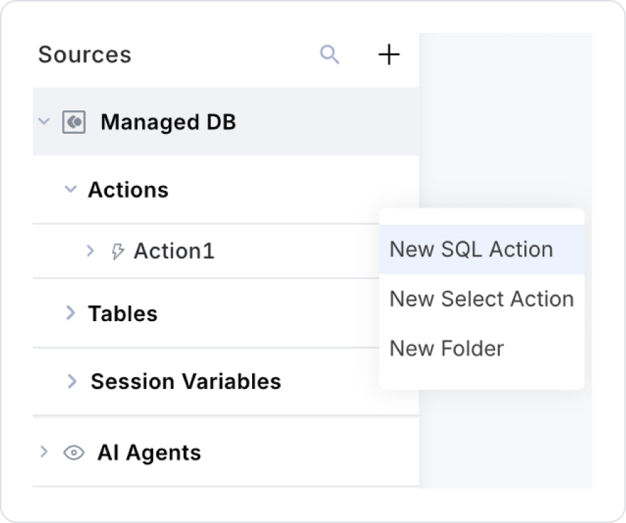 Create a new SQL Action from the Custom Actions area in the left side panel.